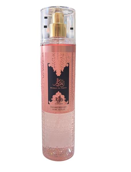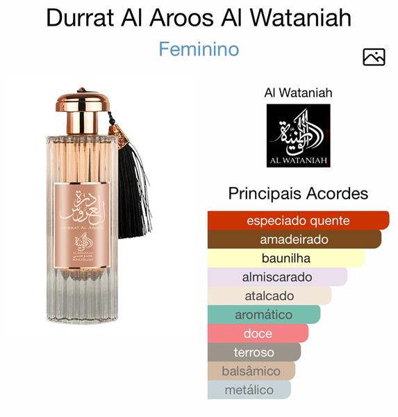Durrat al Aroos é vibrante. Uma mistura sutil de orquídea, baunilha, cumaru e notas de almíscar. Esses aromas sofisticados são então combinados com os aromas ousados do sândalo e âmbar, adicionando um toque sedutor a fragrância.